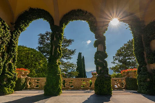 Notre premier coup de cœur est certainement la Villa del Balbianello, une somptueuse et élégante résidence aristocrate du dix-huitième siècle perchée sur un promontoire boisé au bord des rives du lac de Côme, plus précisément dans la ville de Lenno.