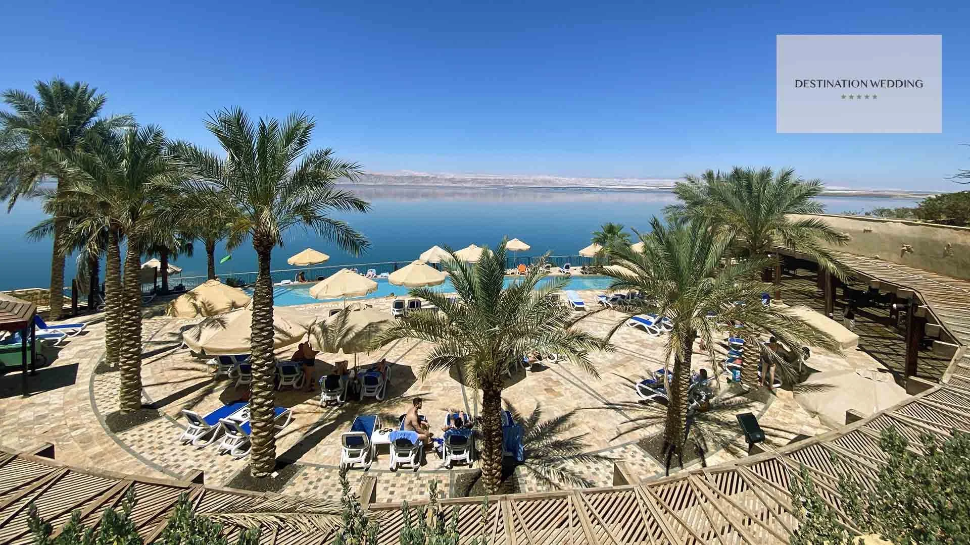 Une cadre naturel spectaculaire : La mer Morte est célèbre pour ses paysages époustouflants. Les couples peuvent profiter d'une vue imprenable sur les eaux turquoise et les montagnes environnantes, créant ainsi un décor magnifique pour leur mariage.