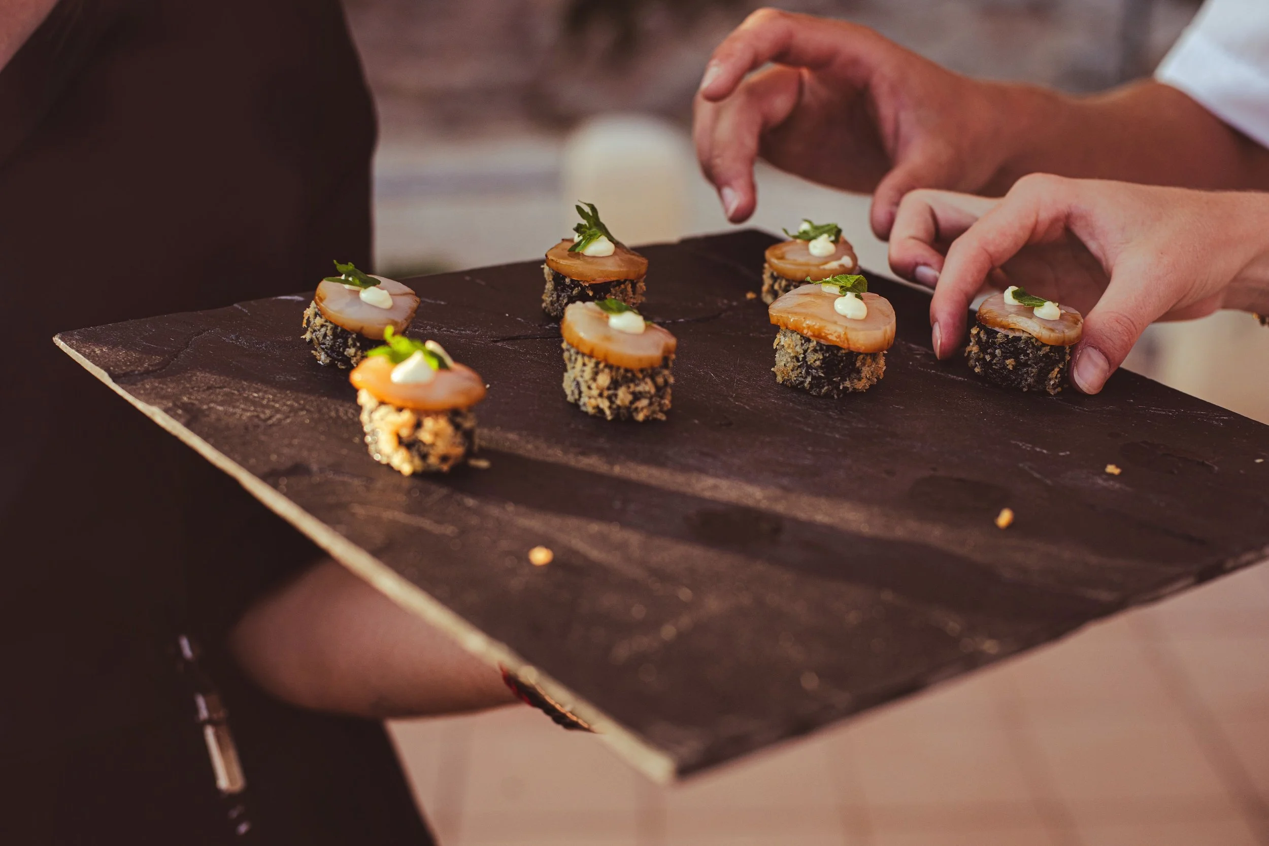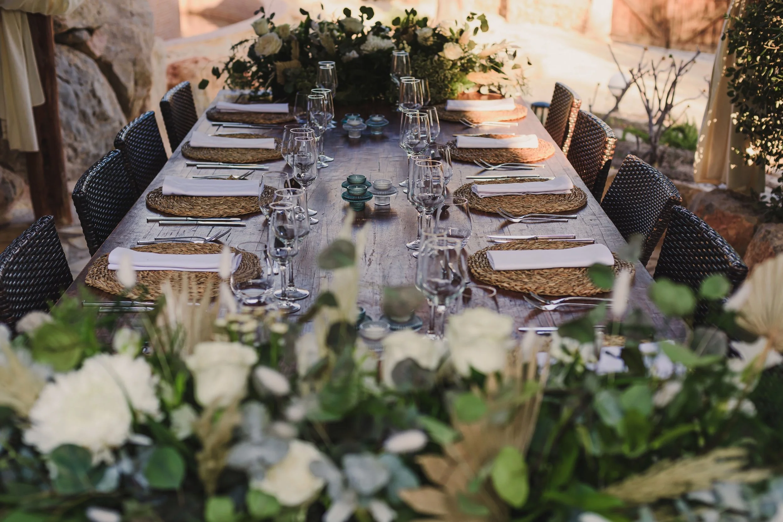 Ibiza est connue pour sa gastronomie, et un mariage bohème chic ne serait pas complet sans un repas à la hauteur de l'occasion. Optez pour un dîner en plein air, avec des tables en bois sur lesquelles vous disposerez des nappes blanches et des centres de table floraux simples mais élégants. Proposez à vos invités un menu composé de fruits de mer frais, de tapas méditerranéennes, et des spécialités provençales accompagnées des meilleurs vins et rosés locaux.